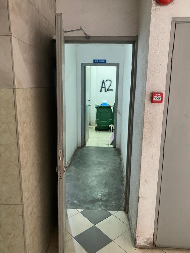 You may visit to Level G floor, left there is a white door. You will be seeing green disposable bin.